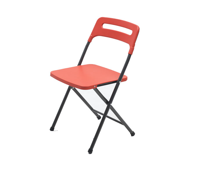 Open Size:430x470x725(H)mm Package Size: 445x320x918(H)mm Net Weight: 2.6 kg Package Q’ty: 8 pc/CTN Container Load: 4368 pcs/40’ Product Features: Molded resin seat and backrest with clean surface on both sides on powder coated tubular steel folding frames. Folds flat for best storage.