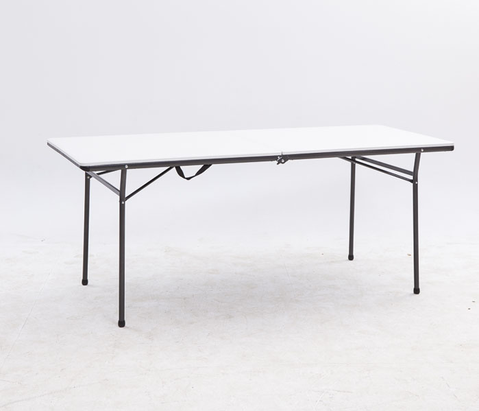 Open Size:752x1820x710(H)mm Package Size: 900x768x950(H)mm Net Weight: 10.32 kg Package Q’ty: 1 pc/CTN Container Load: 1112 pcs/40’ Product Features: Patent vacuum molded plastic table top with built-in tubular steel frame on powder coated tubular steel legs feature concise and strong structure.Fold in half table tops make the table into a suitcase package.