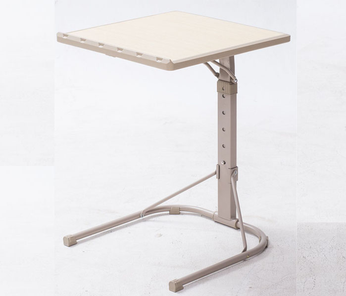 Open Size:170x170x230-300(H)mm Package Size: 255x450x610(H)mm Net Weight: 2.7 kg Package Q’ty: 4 pc/CTN Container Load: 4100 pcs/40’ Product Features: Patent vacuum molded plastic table top with built-in tubular steel frame on powder coated folding leg and feet feature concise and strong structure, and convenient use. The table features 5 heights and 4 tilts of the table top with push pin adjustment mechanisms, hence total 15 optional working conditions of the table top.
